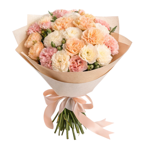 Creamy-peach and light pink carnations is a beautiful gesture to demonstrate sincere love and appreciation